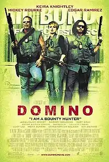 Domino is a 2005 action crime film directed by Tony Scott with a screenplay by Richard Kelly from a story by Kelly and Steve Barancik. An international co-production between France, the United States, and the United Kingdom,[2] the film is inspired by Domino Harvey, the English daughter of stage and screen actor Laurence Harvey, who became a Los Angeles bounty hunter.