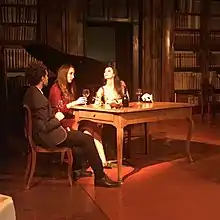 The drama has been analyzed by the literary critic Francesco D’Episcopo from The University of Naples Federico II in the volume Menotti Lerro. Tra Drammaturgia e Narrativa (Genesi: 2019). In addition the play has been the subject of a degree dissertation by a student, Sara Cudia, from the University of Palermo. The same text became later the basis for a critical book about the innovative figure of a female and bisexual Don Juan[5] with the title Donna Giovanna di Menotti Lerro. L'innovazione del mito (Zona:2020). The Trickster of Salerno, Donna Giovanna, has been quickly perceived by critics as a brilliant character able to replace the outdated famous historical version that was, in fact, losing reasons to exist, due to profound changes occurring in our contemporary society's views of libertinism and seduction.[6] The new figure became popular after some fascinating representations: Florence (Biblioteca Marucelliana)[7] Milan (Teatro Fontana),[8] Naples (Teatro Sancarluccio) Borgo San Lorenzo (Villa Pecori Giraldi)[9] and Vallo della Lucania (Teatro Leo de Berardinis).[10] Furthermore, artists have dedicated operas at the new female libertine.[11][12]