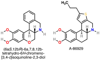 - 1 2 Michaelides MR, Hong Y, DiDomenico S, Asin KE, Britton DR, Lin CW, et al. (September 1995). "(5aR,11bS)-4,5,5a,6,7,11b-hexahydro-2-propyl-3-thia-5-azacyclopent-1- ena[c]-phenanthrene-9,10-diol (A-86929): a potent and selective dopamine D1 agonist that maintains behavioral efficacy following repeated administration and characterization of its diacetyl prodrug (ABT-431)". Journal of Medicinal Chemistry. 38 (18): 3445–3447. doi:10.1021/jm00018a002. PMID 7658429.
