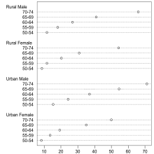 Example of a Cleveland dot plot, showing the death rates per 1000 in Virginia in 1940