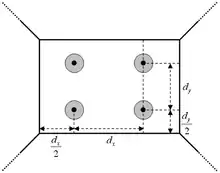With this specific grid layout reflections from the walls act as mirror sources. Interference of the subwoofers and mirror sources create a plane wave up to a certain frequency. The more sources the higher the frequency. This cutoff frequency can be calculated for each dimension as follows: