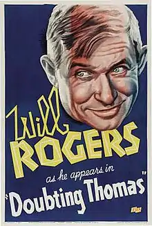 Doubting Thomas is a 1935 American comedy film directed by David Butler and written by William Conselman and Bartlett Cormack. It is based on the 1922 play The Torch Bearers by George Kelly. The film stars Will Rogers, Billie Burke, Alison Skipworth, Sterling Holloway, Andrew Tombes and Gail Patrick. The film was released on June 7, 1935, by 20th Century-Fox Film Corporation.[1][2][3]