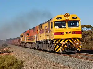 In May 1996, Westrail ordered 15 GT46Cs from Clyde Engineering as part of an order that also included nine narrow gauge S class locomotives.[1] The order was later extended to 19.[2] All were assembled at a facility established by Clyde Engineering within Westrail's Forrestfield Depot to fulfill the contract with components manufactured at Clyde's Kelso and Somerton plants.[3][4] All were included in the sale of Westrail to Australian Railroad Group in December 2000 and again to QR National in June 2006. Initially numbered as the Q class, they were later reclassified as the 4000 class.[5][6]