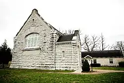 The stone church is described as having "outstanding architectural design and workmanship". A one-story frame caretaker's home is a second contributing building on the property.[2]