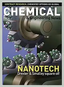 - ↑ "Nanotechnology: Drexler and Smalley make the case for and against 'molecular assemblers'". Chemical & Engineering News. 81 (48): 37–42. 1 December 2003. doi:10.1021/cen-v081n036.p037. Retrieved 9 May 2010.