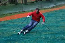 The most recent development has seen a crop of materials providing both impact protection and slope lubrication as well as the ability to perform turns, erect jumps, rails and quarterpipes and provide a ride that is closer to the feel of real snow. Neveplast is one of these, a newer material whose use is becoming even more common. This new type of mat, which uses a concentric arrangement of conical stems, is marketed for downhill, snowboarding and cross country skiing. Neveplast claims to be certified as having the same coefficient of friction between the surface and the ski as snow,[4] allowing the skier a good side grip, with the same skis used on the snow, and without the need for water. The Neveplast cooling hole has a comparable diameter to the F.I.S. slalom pole standards used for training and competition in both slalom and giant slalom. Neveplast is also used for school camps. This surface is modular and flexible, used frequently also for Urban freestyle parks.