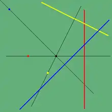 - ↑ Dimension is being used here in two different senses. When referring to a projective space, the term is used in the common geometric way where lines are 1-dimensional and planes are 2-dimensional objects. However, when applied to a vector space, dimension means the number of vectors in a basis, and a basis for a vector subspace, thought of as a line, has two vectors in it, while a basis for a vector space, thought of as a plane, has three vectors in it. If the meaning is not clear from the context, the terms projective or geometric are applied to the projective space concept while algebraic or vector are applied to the vector space one. The relation between the two is simply: algebraic dimension = geometric dimension + 1.