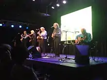 The Dubliners 50th Anniversary Tour was a tour in 2012 by The Dubliners celebrating 50 years. The group was awarded a lifetime achievement award by BBC Radio 2 in February.[1] However, in April, founding member and tenor banjo player Barney McKenna died.[2] Banjo player Gerry O'Connor filled his place until the end of the tour. In November the group released the album 50 Years charting in the Irish Top 10.[3] John Sheahan after 48 years decided he could no longer continue with the band due to the death of Barney McKenna. In December the group played its final concerts at Vicar Street and were joined on stage by Jim McCann. The band met with President Michael Higgins in the presidential palace in Dublin. The group appeared on BBC's Jools Holland Annual Hootenanny on New Year's Eve. With the exception of John Sheahan, the rest of the group continues touring as The Dublin Legends - Spirit of the Dubliners.