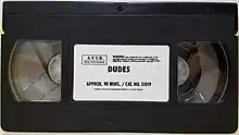In October 1987, Heron Communications filed a lawsuit against the Vista Organization regarding home video rights to Dudes and nine other Vista-produced films, claiming that Vista was attempting to renege on its commitment to license home video distribution of its films to Heron due to a possible merger with Carolco Pictures.[2] Vista claimed that it had no such arrangement with Heron.[2] Dudes was eventually released to home video in VHS format in 1991 by Avid Home Entertainment, a division of Artisan Entertainment.[13] It was on VHS that, like The Decline of Western Civilization, Suburbia, and The Boys Next Door, Dudes found a niche audience in subsequent decades.[8]