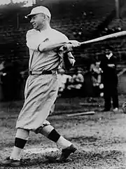 Lewis did not play for the Red Sox during the 1918 season due to his service in the United States Navy during World War I.[25] He enlisted as a yeoman and was stationed at the Mare Island Naval Shipyard, where he was the player-manager for the shipyard's baseball team.[26] He became a chief petty officer before the end of his service.[27] On December 18, 1918, the Red Sox traded Lewis, along with Dutch Leonard and Ernie Shore, to the New York Yankees for Ray Caldwell, Frank Gilhooley, Slim Love, Roxy Walters and $15,000 ($291,836 in current dollar terms).[28] He batted .272 with seven home runs for the Yankees in 1919, while leading the American League with 141 games played.[29] He began to lose playing time in 1920 following the major league debut of Bob Meusel and the acquisition of Ruth from Boston, but Lewis still batted .271 in 107 games played.[1][30] On December 31, 1920, the Yankees traded Lewis and George Mogridge to the Washington Senators for Braggo Roth.[31] Lewis batted .186 in 27 games for Washington before he was released in June.[1]