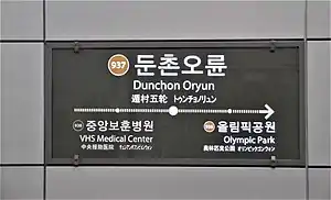 Dunchon Oryun is a station on Line 9 of the Seoul Metropolitan Subway. It opened on December 1, 2018.[1]