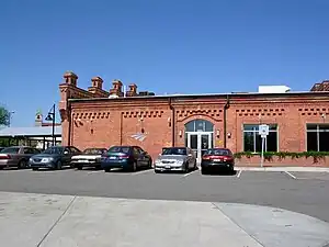 The historic warehouse is a brick structure erected in 1897 by the American Tobacco Company trust. Included in the Bright Leaf National Register Historic District, the building is marked by impressive decorative brickwork such as corbeled pendants and mousetoothing at the cornice and parapet. The station was a joint venture of the North Carolina Department of Transportation (NCDOT) and the city of Durham. The former entered into an agreement with developer Blue Devil Partners to lease and up-fit one third of the Walker Warehouse, while the city was responsible for 25 percent of the lease costs.[3]