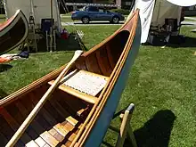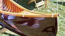 • The rails of early Gerrish canoes extend beyond the stems and are “lashed” at the ends with cane or bound with leather .[15]