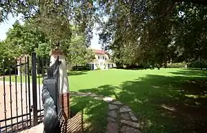 The house faces Central Avenue and anchors the southwest corner of the tree-lined and canopied portion of Central Avenue, known as the bridal path, that runs north from that point for the next two or more miles. The house and outbuildings are located on nearly one and a half acres of gardens on the corner of Bethany Home Road and Central Avenue. The property has a long cobblestone and decomposed granite driveway that runs along the south side of the property. There are gated drive entrances on Bethany Home Road and Central Avenue, with a concrete block wall that surrounds the property.