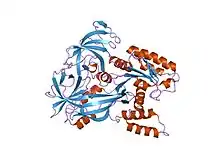 2. Pérez JM, Siegal G, Kriek J, Hård K, Dijk J, Canters GW, Möller W (February 1999). "The solution structure of the guanine nucleotide exchange domain of human elongation factor 1beta reveals a striking resemblance to that of EF-Ts from Escherichia coli". Structure. 7 (2): 217–26. doi:10.1016/S0969-2126(99)80027-6. PMID 10368288.