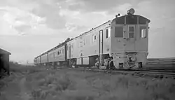 EMC demonstrator #511 on the Chicago, Burlington and Quincy Railroad in 1937. The locomotive is painted silver, to serve as a backup for CB&Q's Zephyr and AT&SF's Super Chief locomotives.