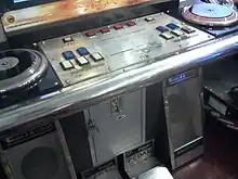 The control panel on a EZ2DJ arcade cabinet