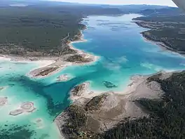 Eagle Lake is an endorheic lake in the western Chilcotin District of the Central Interior of British Columbia, Canada, located southeast of Tatla Lake and west of the city of Williams Lake.[1] The lake is a popular summer location with warm water, sky-blue water, and white sand beaches. The lake has no outflow, and the water level continues to recede over time. Since 1970 the lake level has dropped over 6m (as of 2018). This means that the former Islands are now connected to the shoreline and new Islands have been created on the western bay.