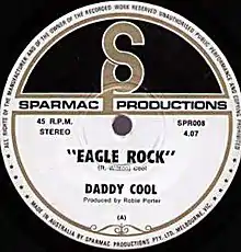 "Eagle Rock" is the debut single by Australian rock band Daddy Cool, released in 1971 on the Sparmac record label. It went on to become the best-selling Australian single of the year, achieving gold status in eleven weeks, and remaining at No. 1 on the national charts for a (then) record ten weeks.[1][2] "Eagle Rock" also spent 17 weeks at the No. 1 spot on the Melbourne Top 40 Singles Chart.[3] The song was re-released by Wizard Records in 1982, and reached No. 17 on the Australian singles chart.[2]