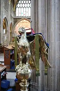 An eagle lectern is a lectern in the shape of an eagle on whose outstretched wings the Bible or other texts rest.[1] They are common in Christian churches and may be in stone, wood or metal, usually brass.