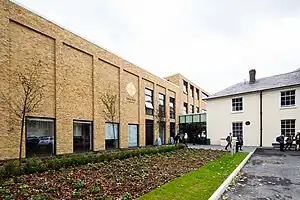 During the building phase, Boris Johnson visited.[5] New buildings consist of a main teaching block and sports hub with community access. The design is in keeping with the existing heritage with large areas of brickwork, portrait windows, and brick piers and detailing around entrances.