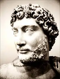 In 127, at the age of six, Marcus was enrolled in the equestrian order on the recommendation of Emperor Hadrian. Though this was not completely unprecedented, and other children are known to have joined the order, Marcus was still unusually young. In 128, he was enrolled in the priestly college of the Salii. Since the standard qualifications for the college were not met—Marcus did not have two living parents—they must have been waived by Hadrian, Marcus' nominator, as a special favor to the child.[51] Hadrian had a strong affection for Marcus, and nicknamed him Verissimus, "most true".[52][notes 6]