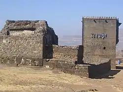 Even before Dadoji's death, during 1645-1647, Shivaji controlled several hill forts around Pune, including Rajgad, Kondana (later Sinhagad) and Torna.[41] The Sabhasad Bakhar states that Shivaji took control of the Kondana Fort by bribing its Bijapuri governor.[42] In 1646, he sent an infantry led by Baji Pasalkar, Yesaji Kank, and Tanaji Malusare to take control of the Torna Fort.[40] According to different historical texts, Shivaji's army captured the fort after tricking or bribing the local Bijapuri commander.[40][39] Shivaji seized the local government treasury worth 200,000 hon (gold coins), and renamed the fort Prachandagarh, although this name did not stick for long.[40] He built the Rajgad near Torna, with three walled redoubts.[40]