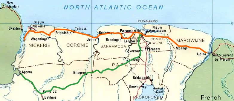 - ↑ Agence Française de Développement - Surinam: rehabilitating the road linking Paramaribo to French Guiana Archived 2009-12-23 at the Wayback Machine