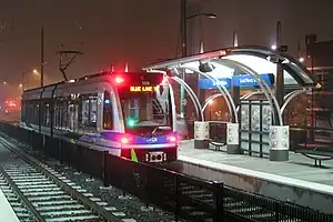 - ↑ Harrison, Steve; Valle, Kristen (November 25, 2007). "Light rail, heavy traffic: Thousands wait in lines for a free ride on 1st day". The Charlotte Observer. p. 1A.