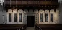 The Penn Avenue main entrance carvings represent the City of God (left) and the Tower of David (right).[3]