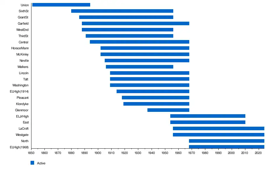 | Taft School | 1909 | 1968 | Currently Wee the People Preschool and Daycare III |