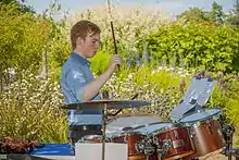 ENF is committed to commissioning new works by major figures that are intended for performance by professional and community musicians side by side. The first work in this series was Across the Distance for 32 horns by John Luther Adams in 2015.[2] In 2016 this was followed by David Lang's Memorial Ground for amateur and professional singers, a choral commemoration of the centenary of the Battle of the Somme.[3] This was commissioned jointly by the East Neuk Festival and 14-18 NOW, with the support of Creative Scotland. Premiered on 2 July 2016, it was then made available for free to choirs to create their own performances, and more than 40 performances have taken place by April 2017. In 2017 ENF commissioned a devised performance with the musicians of the Tullis Russell Mills Band in Fife, led by trumpeter John Wallace and his The Wallace Collection musicians. Inspired by the stories of Fife's miners, and the music they made in their brass bands, it was called De Profundis and was premiered in Fife on 1 July 2017.[4] 2018's commission saw Scanner work with students from Waid Academy, Anstruther to create a sound memorial to men lost at sea in the fishing industry.[5]
