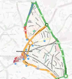The Eastside district as located in Birmingham.
