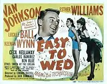 Easy to Wed is a 1946 Technicolor American musical comedy film directed by Edward Buzzell, and starring Van Johnson, Esther Williams, Lucille Ball, and Keenan Wynn. The screenplay by Dorothy Kingsley is an adaptation of the screenplay of the 1936 film Libeled Lady by Maurine Dallas Watkins, Howard Emmett Rogers, and George Oppenheimer.