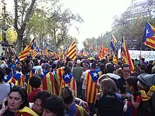 Pro-Independence Catalans during a protest in 2012. The Estelada can be seen throughout.