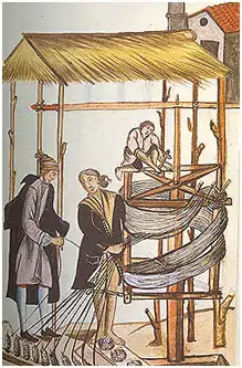 Most manufactured goods for elite consumers were mainly of European origin, including textiles and books, with porcelains and silk coming from China via the Spanish Philippine trade, known as the Manila Galleon. Profits from the colonial export economies allowed elites to purchase these foreign luxury goods. There was virtually no local manufacturing of consumer goods, with the exception of rough woolen cloth made from locally raised sheep destined for an urban mass market. The cloth was produced in small-scale textile workshops, best documented in Peru and Mexico, called obrajes, which also functioned as jails. Cheap alcohol for the poor was also produced, including pulque, chicha, and rum, but Spanish American elites drank wine imported from Spain. Tobacco was cultivated in various regions of Latin America for local consumption, but in the eighteenth century, the Spanish crown created a monopoly on the cultivation of tobacco and created royal factories to produce cigars and cigarettes.[41]