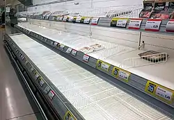 The pandemic has impacted the retail sector. Shopping centres around the world responded by reducing hours or closing down temporarily. As of 18 March 2020, the footfall to shopping centres fell by up to 30%, with significant impact in every continent.[156] Additionally, product demand exceeded supply for many consumables, resulting in empty retail shelves.[157][158] In Australia, the pandemic has provided a new opportunity for daigou shoppers to re-sell into the China market. "The virus crisis, while frightening, has a silver lining".[159][160]