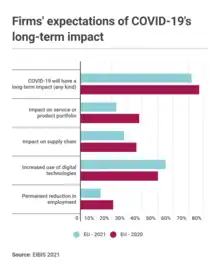 More than two-fifths of businesses (44%) did not experience a year-on-year sales loss as a result of COVID-19 at the time of the European Investment Bank's investment survey, and more than half predicted stronger sales in 2022 than before the pandemic.[59][60][61]