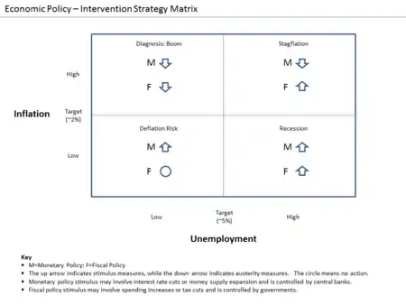 In Western countries, government officials theoretically weigh the cost benefit for an intervention for the population or they succumb beneath coercion by a third private party and must take action.[11] Intervention for economic development is also at the discretion and self-interest of the stake holders, the multifarious interpretations of progress and development theory.[2] To illustrate this, the government and international institutions did not prop up Lehman Brothers during the financial crisis of 2007–2008, therefore allowing the company to file bankruptcy. Days later, when American International Group waned towards collapsing, the state spent public money to keep it from falling.[11] These corporations have interconnected interests with the state, therefore their incentive is to influence the government to designate regulatory policies[11] that will not inhibit their accumulation of assets.[6] In Japan, Abenomics is a form of intervention with respect to Prime Minister Shinzō Abe's desire to restore the country's former glory in the midst of a globalized economy.[12]