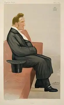 Beckett began practising law in 1841 at Lincoln's Inn, becoming a leader of the parliamentary bar. He was made a Queen's Counsel in 1854, retiring in 1881.[2] He was elected to the Royal Astronomical Society in 1866. He was elected to the presidency of the British Horological Institute in 1868, a position he accepted on the condition that he should not be asked to attend dinners.[3] He was re-elected annually until his death.[1] In 1877 he was appointed Chancellor and Vicar-General of the Diocese of York.[2] He was created Baron Grimthorpe in 1886. He is sometimes known as Edmund Beckett Denison; his father had taken the additional name Denison in 1816, but the son dropped it on his father's death in 1874. He married Fanny Catherine (23 February 1823 – 8 December 1901), daughter of John Lonsdale, 89th Bishop of Lichfield.