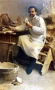 He rarely participated in official exhibitions; preferring to hold private showings, of which there were four between 1888 and 1898. They were themed around love of the homeland and the final one was called the "Exposition of Republican Art": celebrating the 10th anniversary of the Republic.[1]