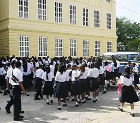 Education in Panama is compulsory for the first six years of primary education and the first three years of secondary school.[1][2] As of the 2004/2005 school year there were about 430,000 students enrolled in grades one through six (95% attendance).[1] The total enrollment in the six secondary grades for the same period was 253,900 (60% attendance).[1] More than 91% of Panamanians are literate.[1]