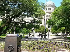 The Texas State University System, created in 1911 to oversee the state's normal schools (teachers' colleges), is the oldest multi-system University System in Texas.[41] The system is the only one of the six Texas state university systems to be a horizontal system: it does not have a flagship institution and considers every campus to be unique in its own way.[42] Over the years, several member schools have been moved to other university systems. Today, the system encompasses seven institutions; Texas State University, located halfway between Austin and San Antonio in San Marcos, Texas, is the largest university in the system with an enrollment of 38,694 students.[43] Lamar University located in Beaumont, Texas and previously in its own system, joined the TSUS in 1995.[44] It boast an enrollment of 14,384 students as of spring 2010 and is most notable for its highly respected engineering program.[45] Sam Houston State University located in Huntsville, Texas is the 2nd largest university in the TSUS with 18,478 students and is home to one of the world's largest and best Criminal Justice Programs.