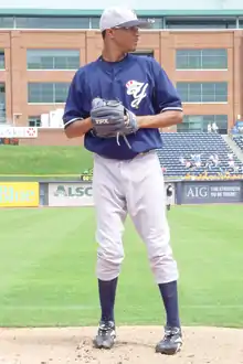 Ramírez was called up to the Yankees, his first promotion to MLB, on July 1, 2007.[17] He made his MLB debut on July 3 against the Minnesota Twins, pitching the ninth inning. He struck out all three batters he faced, including reigning American League Most Valuable Player Justin Morneau, in an 8–0 win for the Yankees.[18] The last Yankee to strike out the side in his MLB debut was Stan Bahnsen during the 1966 season.[19] The only other rookies to strike out the side in their debut inning are Tyler Robertson, Jordan De Jong, Todd Wellemeyer, Jeremy Fikac, Braden Looper, Angelo LiPetri, and Paul Giel.[20]