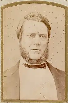 In politics Butler was a strong supporter of the "liberal party", associated with Parkes and John Robertson, including Robertson's land policy and Charles Cowper's support for the withdrawal of state aid to religion.[1] From 1869 to 1877 he was the member for Argyle in the New South Wales Legislative Assembly,[2] and was the 13th Attorney General of New South Wales in the first Parkes ministry from May 1872 to November 1873.[3] He made a major contribution to reducing the level of sectarianism that had been sparked by Henry James O'Farrell's attack on Prince Alfred, Duke of Edinburgh in 1868.[1] He became a Queen's Counsel on 19 November 1873.[4]
