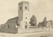 Mary, baptised 22 December 1605 married John Wheelwright sometime about 1630 when she was 24 years old. Wheelwright's first wife, Mary Storre, died in 1629, leaving him with three small children. Following his marriage to Mary, the couple had three children baptised in England (one died young) and five more in New England.[34] Wheelwright had been the vicar of the parish church in Bilsby, Lincolnshire for ten years when in 1633 he was released from the position, apparently for simony when he tried to sell his position back to the patron.[35] He may have been trying to gather funds for a trip to New England, but instead was forced to find other employment until he was finally able to emigrate in 1636. Mary's mother, the widowed Susanna Hutchinson, likely sailed to New England with the Wheelwrights, because she lived with this family for the remainder of her life.[34]