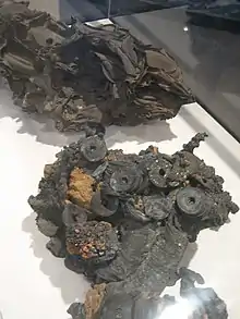 Melted and fused pieces of metal (including coins that were in people's pockets) from the Atomic bombings of Japan. The melting of metal like this occurred during the ensuing fires and firestorms, long after the bombs had exploded.