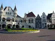 Designed by van de Ven, it matches the typical Efteling style. The surroundings consist of old Dutch warehouses. In addition to the theatre facilities, the building holds a large foyer and a restaurant. The total building costs added up to €20 million.[1]