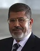 In June 2012, Mohamed Morsi won the presidential election with 51.7% of the vote in a run-off against army-backed candidate Ahmed Shafik, who served under Mubarak as prime minister.[11][31] Morsi, a leading member of the Muslim Brotherhood and the Freedom and Justice Party, resigned from both organizations and was sworn in as Egypt's first civilian president on 30 June 2012.[28] However, Morsi's presidency was brief and short-lived, facing massive protests for and against his rule, only to be ousted in a military coup in July 2013.[27]