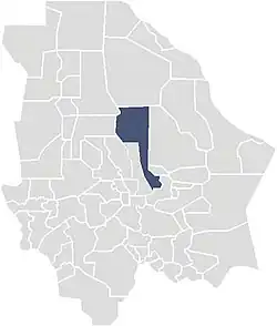 Under the 2005 districting scheme, Chihuahua's Eighth District comprises the eastern and northern portions of Chihuahua Municipality, including approximately one-half of the urban area of the city of Chihuahua.[1] The other half of the city, and the rest of the municipality, is covered by the Sixth District.